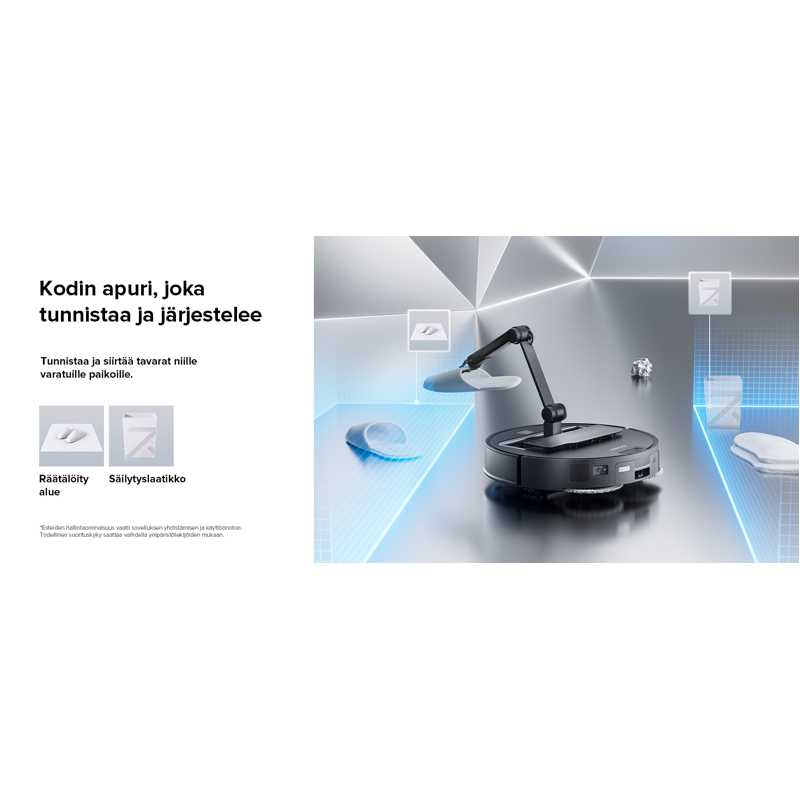 - Saros Z70 tunnistaa ja siirtää kotitalousesineet niille ohjelmistossa määriteltyihin paikkoihin