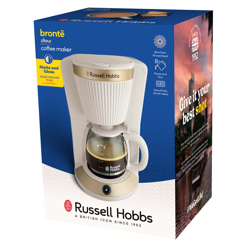 - Tee kahvitauoista entistä nautinnollisempia ja lisää keittiöösi ripaus tyylikkyyttä Russell Hobbs Brontë -kahvinkeittimellä