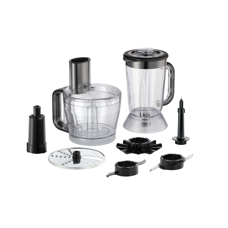 Monitoimikoneessa on suuri 2,5 litran kulho, jonka käyttökapasiteetti on 1,5 litraa. Mukana on myös muovinen tehosekoituskannu, jonka tilavuus on 1,5 litraa, joten se sopii täydellisesti smoothieiden, keittojen ja monen muun sekoittamiseen. Kaikki irtonaiset muoviosat ovat BPA-vapaita ja astianpesukoneen kestäviä, joten puhdistaminen on nopeaa ja kätevää.