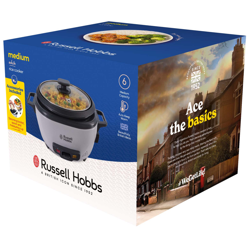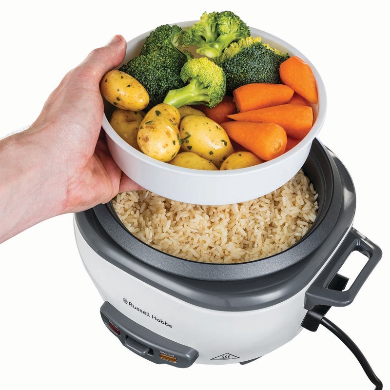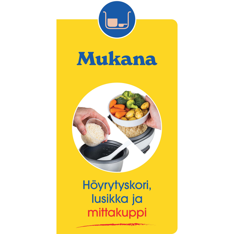 Valmista Russell Hobbsin-riisinkeittimellä aterioita, joita koko perhe rakastaa. Riippumatta siitä, haluatko valmistaa yhden annoksen riisiä tai vaikka risoton koko perheelle - tämä riisinkeitin keittää 6 annosta täydellistä riisiä (200 g per annos). Riisinkeittimen automaattinen lämpimänäpitotoiminto pitää riisin lämpimänä valmistuksen jälkeen. Ihanteellinen kiireisille perheille, joiden perheenjäsenet syövät eri aikoina.Riisinkeittimessä on irrotettava non-stick-kulho ja lasikansi, jotka kestävät konepesun. Nyt voit nauttia kotitekoisesta ateriasta - ja antaa astianpesukoneen huolehtia lopusta. Kätevällä mittakupilla mittaat tarkasti sen määrän riisiä, jonka haluat valmistaa ja kun riisi on valmista tarjoiltavaksi, käytä tarjoilussa mukana tulevaa riisilusikkaa. Höyrykorin avulla voit valmistaa riisiä kulhossa ja samanaikaisesti höyryttää herkullisia kasviksia ja maukasta lohta tai höyrytä suussa sulavat aasialaiset dumplingsit.