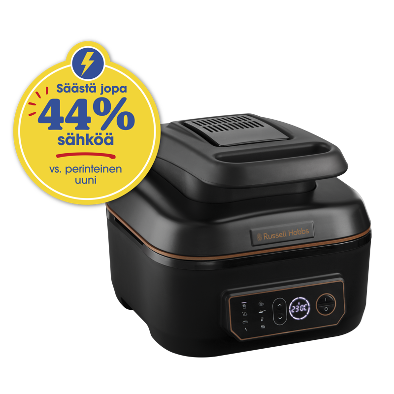 Russell Hobbs SatisFry Air & Grill- monitoimikeitin kierrättää tehokkaasti ilmaa jopa 260 °C:n lämpötilassa. Kun grillaat, lopputuloksesta tulee täydellinen ylhäältä ja alhaalta tulevan tasaisen lämmön ansiosta.