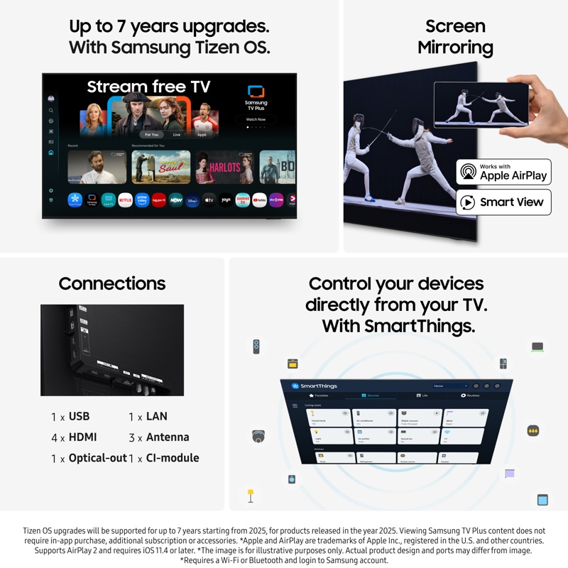 - NQ4 AI Gen3 Processor – Samsungin tehokkain tekoälyyn perustuva 4K-suoritin luo vaikuttavan 4K-katseluelämyksen
