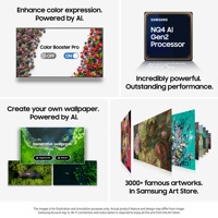 *Samsung-tilille kirjautuminen ja Wi-Fi-yhteys vaaditaan. Edellyttää tilauksen, jotta voit nauttia kaikista Art Storen taideteoksista. Tarjoaa 30 kuukausittain vaihtuvaa taideteosta Art Store Streamsin kautta ja yli 70 ambient-sisältöä, jotka ovat saatavilla ilmaiseksi ympäri vuoden.Liikesensori aktivoituu päälle kytkemisen jälkeen ja se toimii vain Art Mode -tilassa. Suorituskyky voi vaihdella valaistusolosuhteiden mukaan.