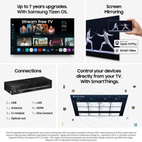 - QLED-kuvanlaatu ja Sertifioitu Matte Display -näyttö, joka minimoi heijastukset ja elävöittää sisältösi tekstuureja