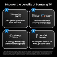 - Samsungin ylöspäin suunnatut kaiuttimet ja Dolby Atmos luovat upean ympäröiviä äänielämyksiä moniulotteisella äänentoistolla