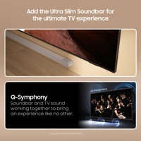 Q-Symphony – Toimintoa tukeva Samsung Soundbar toimii yhdessä Samsung-televisiosi kanssa ja niiden yhteispelillä saadaan mukaansatempaava äänielämys. Se parantaa ääntä ja yhdistää television kaiuttimet soundbarin kaiuttimien kanssa, nostaen äänielämykset aivan uudelle tasolle.