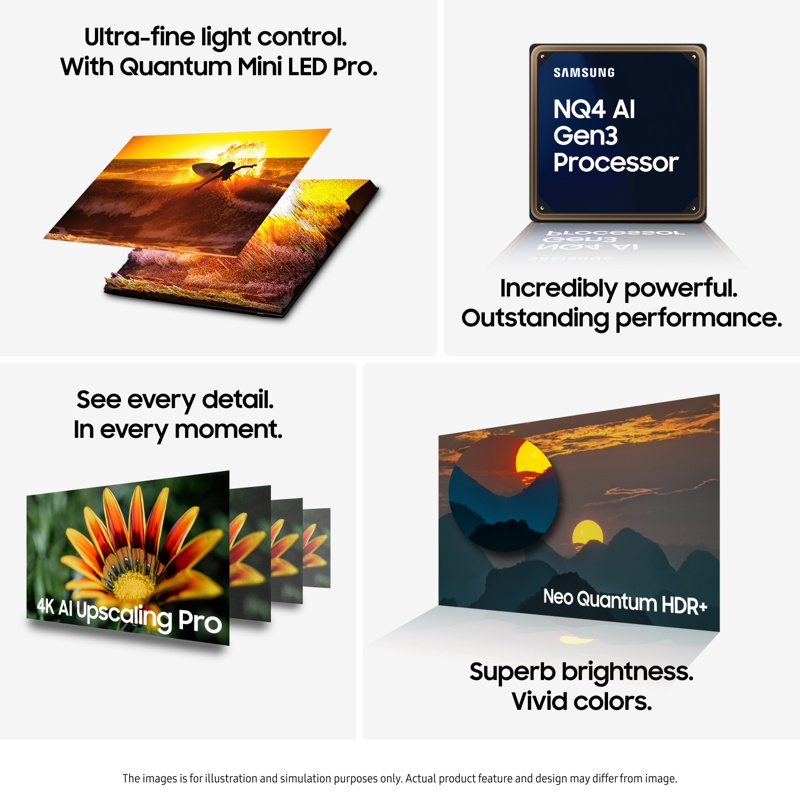 - Neo QLED -kuvanlaatu Quantum Mini LED Pro -tekniikalla – entistä upeammat värit ja kontrasti