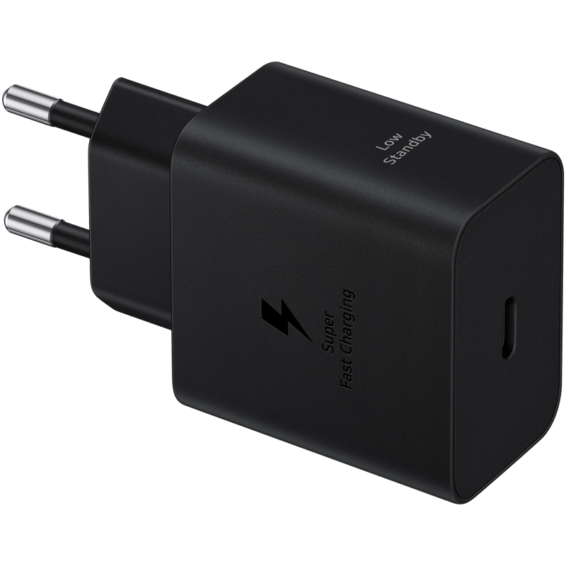 Samsung 45 W USB-C on laturi, joka mahdollistaa Super Fast Charging -pikalatauksen jopa 45 watin teholla yhteensopivien laitteiden kanssa. Tehokkaimman lataustehon saat, kun käytät laturin kanssa virallista Samsung USB-C to USB-C -latausjohtoa. Voit ladata laturilla pikalatauksen mahdollistavat laitteet huippunopeasti, mutta se palvelee sinua myös muiden laitteiden kanssa. PD 3.0 -standardin kanssa yhteensopivia laitteita on mahdollista ladata enintään 45 watin teholla ja muita laitteita niiden mahdollistamilla enimmäisnopeuksilla.
