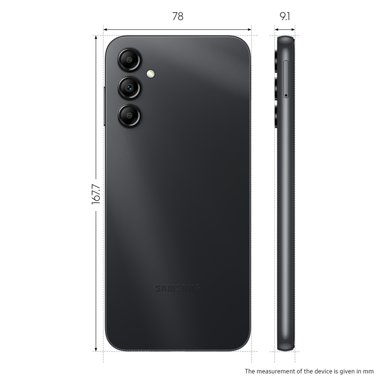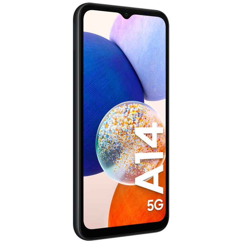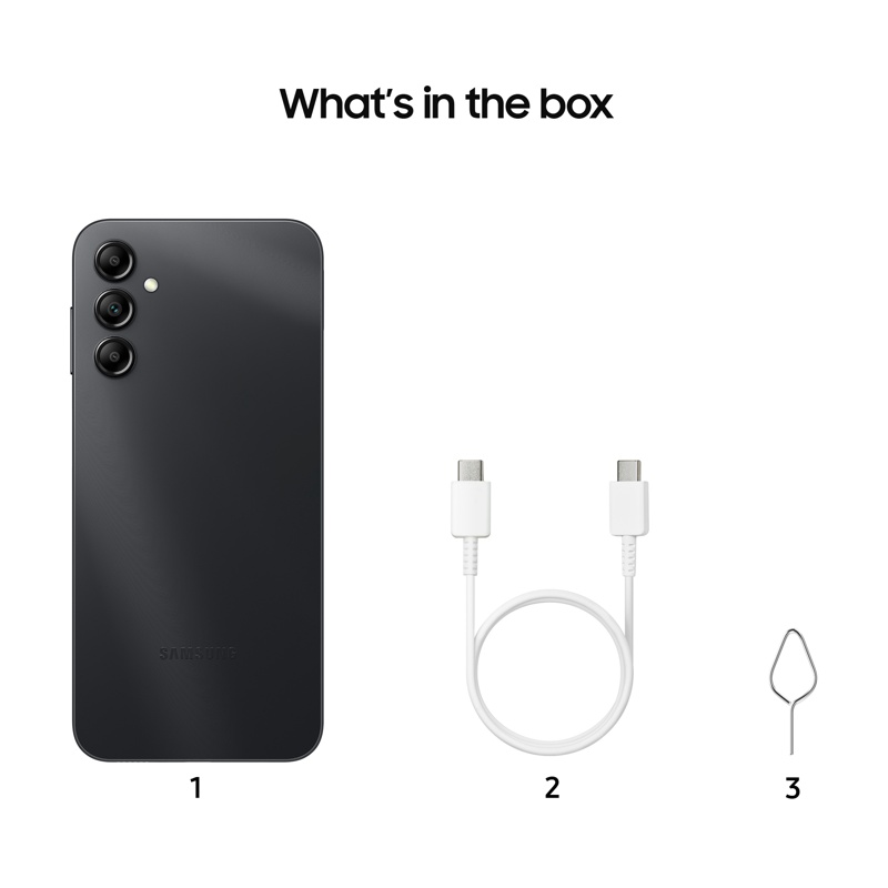 Galaxy A14 5G:n lisäksi: johto (USB-C), SIM-kortin poistotyökalu sekä pikaohje