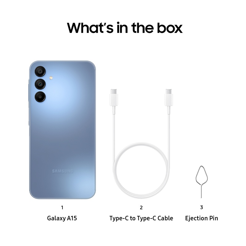 Galaxy A15 5G, USB-C-johto, SIM-kortin poistotyökalu, pikaohje