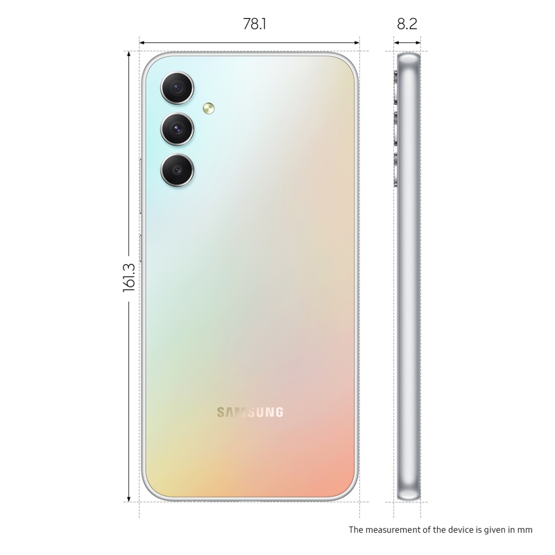 Galaxy A34 5G:n lisäksi: johto (USB-C), SIM-kortin poistotyökalu sekä pikaohje