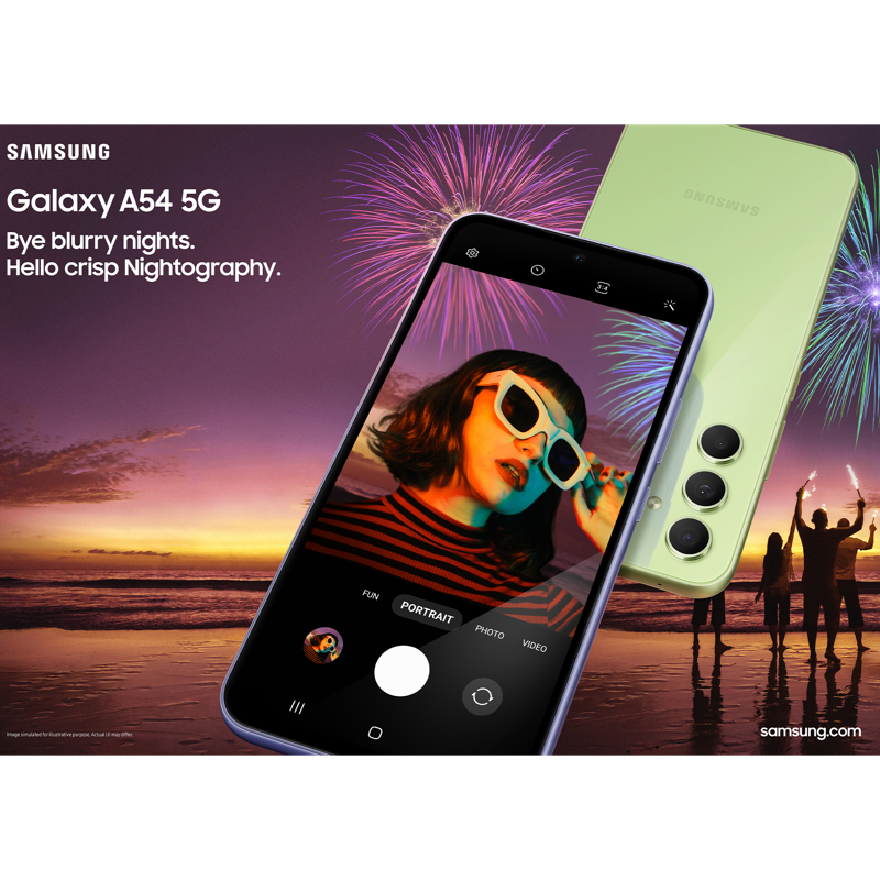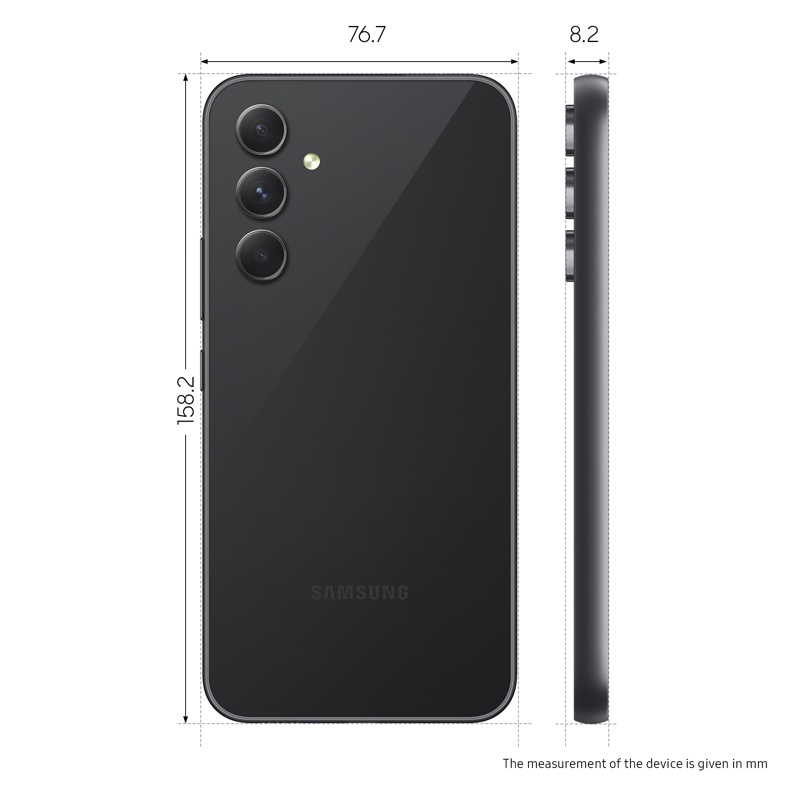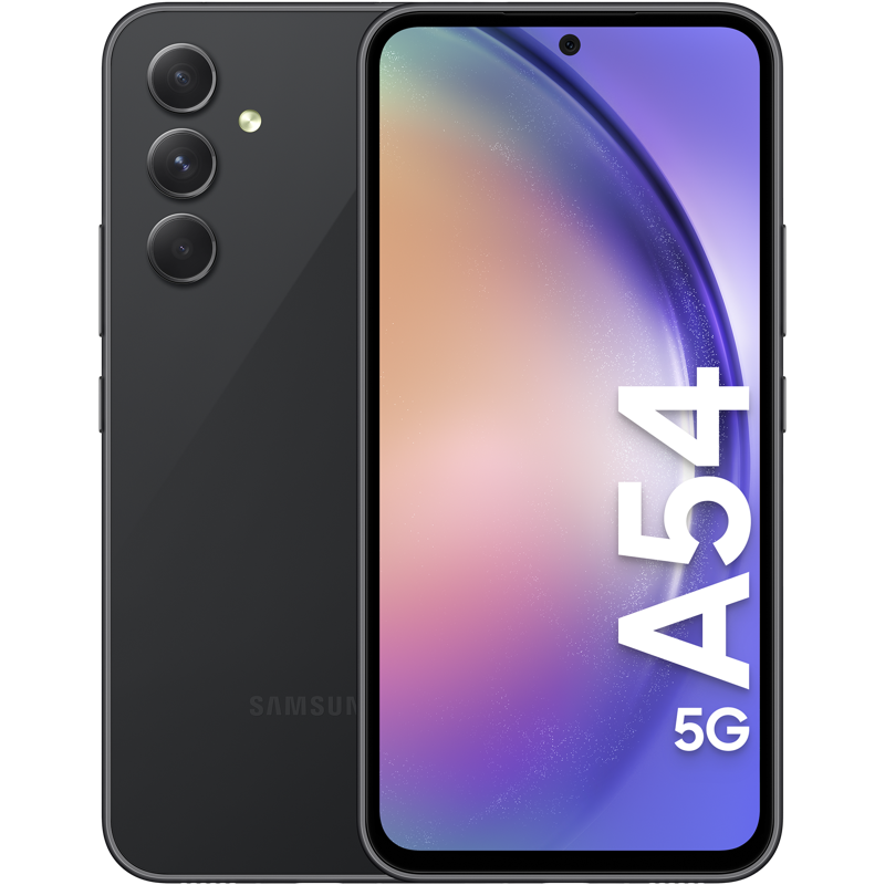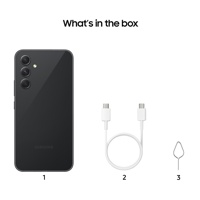 Galaxy A54 5G:n lisäksi: johto (USB-C), SIM-kortin poistotyökalu sekä pikaohje.