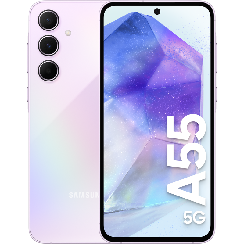 Galaxy A55 5G:n lisäksi: johto (USB-C), SIM-kortin poistotyökalu sekä pikaohje