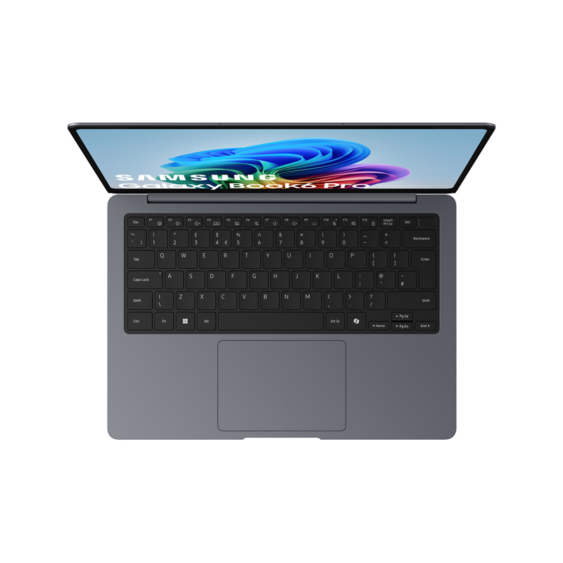 Galaxy Book6 Pro on suunniteltu tuntumaan juuri oikealta. Uusi muotoilu on sekä ohuempi että symmetrinen, mikä tuo käyttökokemukseen lisää moderniutta ja tasapainoa. Näppäimistö ja kosketuslevy on keskitetty helpottamaan käyttöä entisestään. Näppäimistö on saanut huomattavan visuaalisen päivityksen: se erottuu nyt tietokoneen muusta ulkoasusta ja näppäimet on ryhmitelty selkeästi, jolloin käyttäjän on entistä sujuvampaa liikkua näppäinten välillä. Kosketuslevyä on parannettu sisäänrakennetulla haptisella palautteella, mikä lisää hallittavuutta ja tekee jokaisesta painalluksesta miellyttävämmän. Koko pinta-alaa voi käyttää pehmeään mutta tarkkaan navigointiin.
