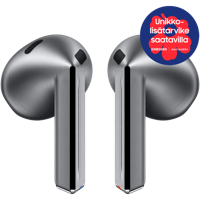 Latauskotelo antaa Galaxy Buds3 -kuulokkeillesi virtaa viihteen käyttöön tunneiksi. Saat jopa 6 tuntia kuunteluaikaa yhdellä latauskerralla ja yhteensä jopa 30 tuntia kotelon kanssa. Voit myös yhdistää kotelossa olevat kuulokkeet laitteeseesi painamalla nappia kolme sekuntia.