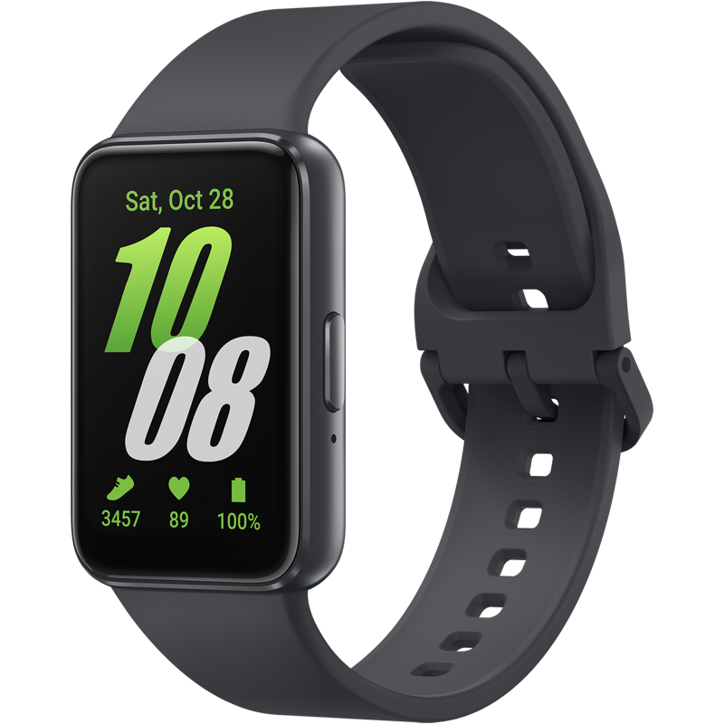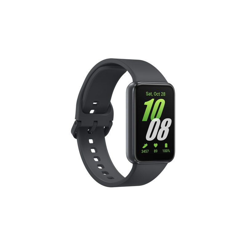 Samsung Galaxy Fit3 kestää jopa 13 päivää yhdellä latauksella. Istuu kevyesti ranteessasi, seuraten yli 100 harjoitusta ja päivittäistä toimintaa, mukaan lukien uni. Voit soittaa musiikkia, tarkistaa puhelut ja lähettää viestejä suoraan ranteestasi – pysy voimaantuneena, yhteydessä ja helposti raiteilla Galaxy Fit3:n avulla.