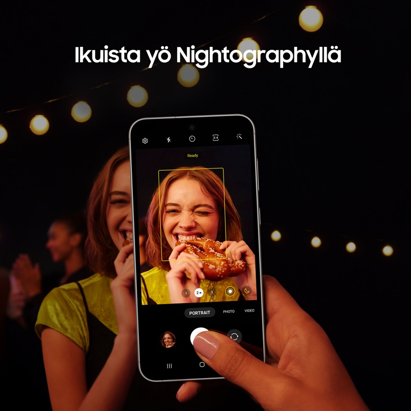 - 50 MP laajakulmakamera tallentaa yksityiskohdat terävästi ja parannetun Nightographyn avulla kuvaat valokuvia ja videota entistäkin laadukkaammin ja terävämmin myös pimeässä