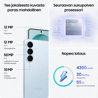 Galaxy S26:n tehokas 4300 mAh akku kestää koko pitkän päivän* ilman jatkuvaa latauspisteen metsästystä. Striimaa sarjoja, pelaa ja kuvaa omaan tahtiin. Älykäs virranhallinta mukautuu käyttöön ja hyödyntää jokaisen latauksen mahdollisimman pitkää käyttöä varten.
