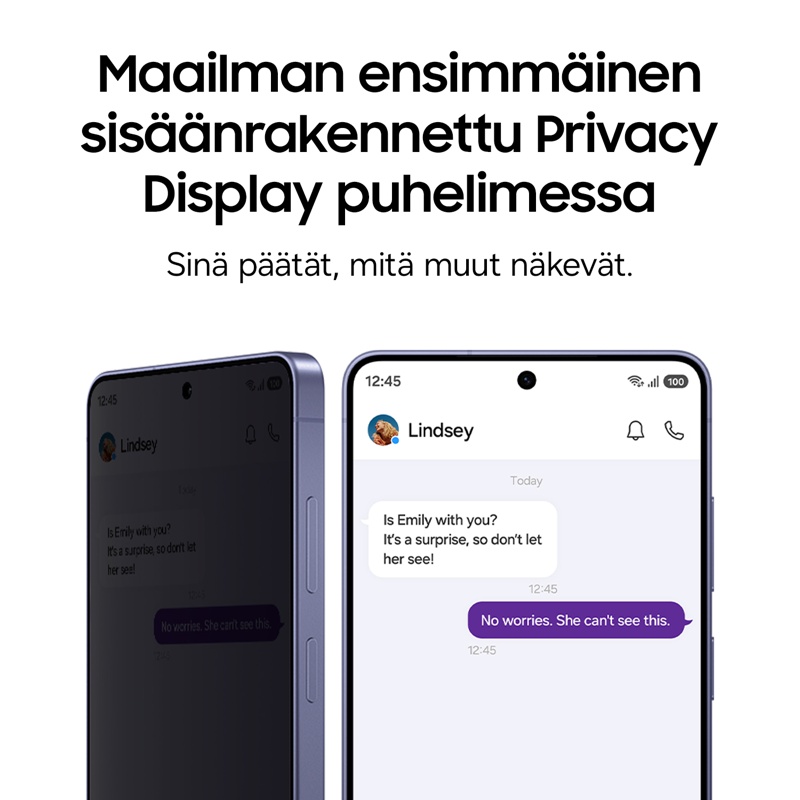 - Privacy Display – Neljä eri yksityisyyden suojaustasoa tekevät sinulle mahdolliseksi junassa työskentelyn, kahvilassa selailun tai yksityisten viestien lukemisen kenenkään kurkkimatta.