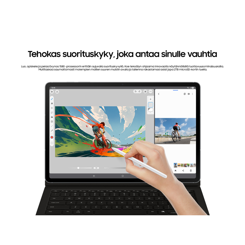 Galaxy Tab S10 FE on niin tehokas, että voit helposti muokata sekä kuvia että videoita. Kuvaa ja ota valokuvia puhelimellasi ja siirrä ne nopeasti tablettiisi Quick Sharen avulla. S Pen -kynällä voit merkitä suoraan näytöllä, miten haluat rajata ja leikata materiaalia.