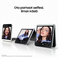- 6,7” 120 Hz:n taitettava ja dynaaminen päänäyttö sekä 3,4” etunäyttö älykkäillä ominaisuuksilla – Galaxy Flip5:llä näet ja hallitset sinulle tärkeitä asioita