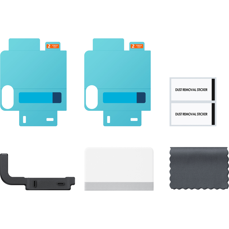 Alkuperäinen tarvike Samsung laitteellesi. Täydellinen yhteensopivuus. Suojaa näyttöä naarmuilta, kolhuilta sekä heijastuksilta. Mukana toimitetaan kaikki tarvittava kalvon asentamiseen.