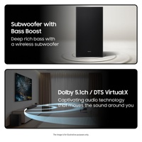 - 5.1-kanavaisen äänimaailma tarkalla äänenlaadulla ja vahvalla bassolla