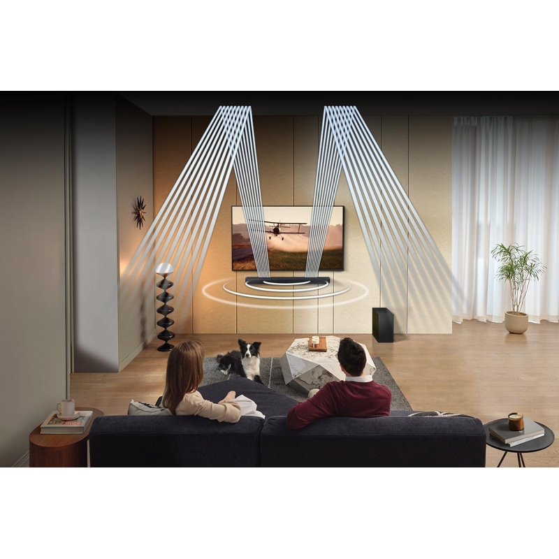 - Dynaaminen 3.1.2.-kanavainen ääni ja ylöspäin suunnatut kaiuttimet saavat aikaan moniulotteisen surround-äänen