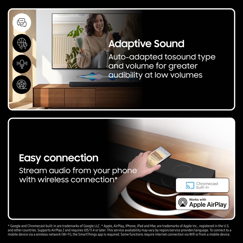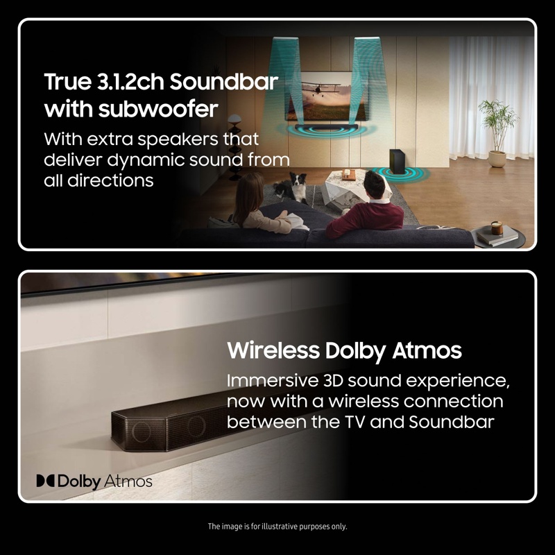 - Dynaaminen 3.1.2.-kanavainen ääni ja ylöspäin suunnatut kaiuttimet saavat aikaan todentuntuisen surround-äänen