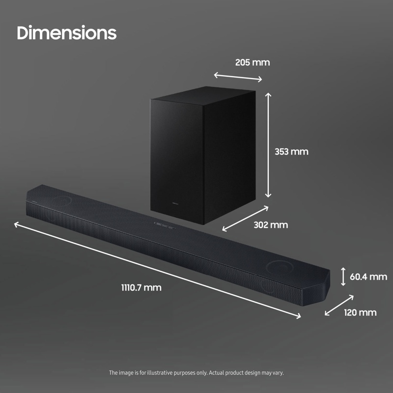 Soundbar: 1110,7 x 60,4 x 120 mm / 4,8 kg