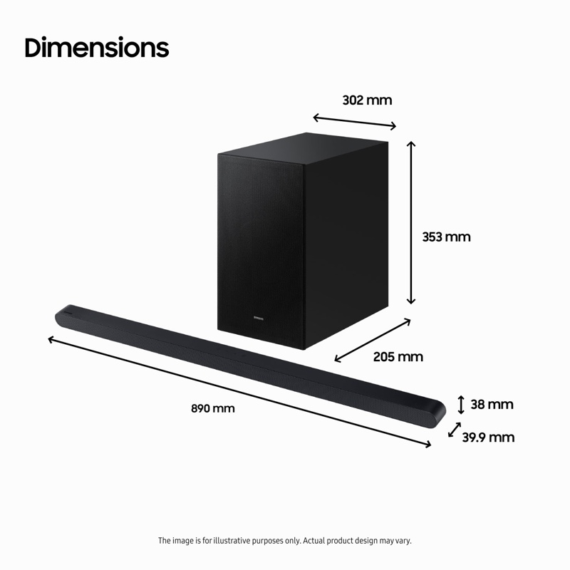 Soundbar: 890 x 38 x 39,9 mm / 1 kg