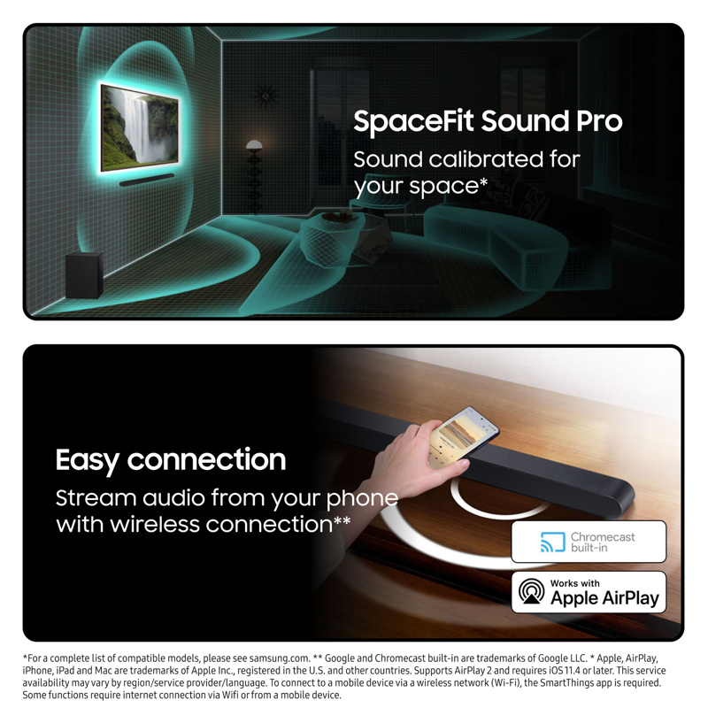 Q-Symphony toimii yhteensopivilla Samsung-televisioilla sekä S-/Q-sarjan soundbareilla, jotka ovat vuoden 2021 mallia tai uudempia.
