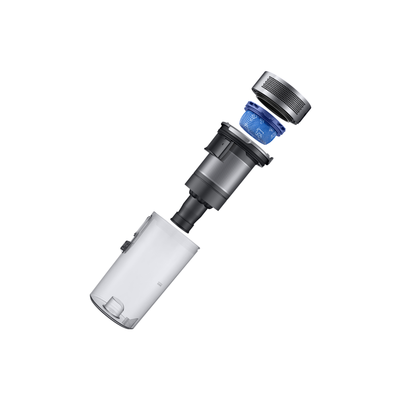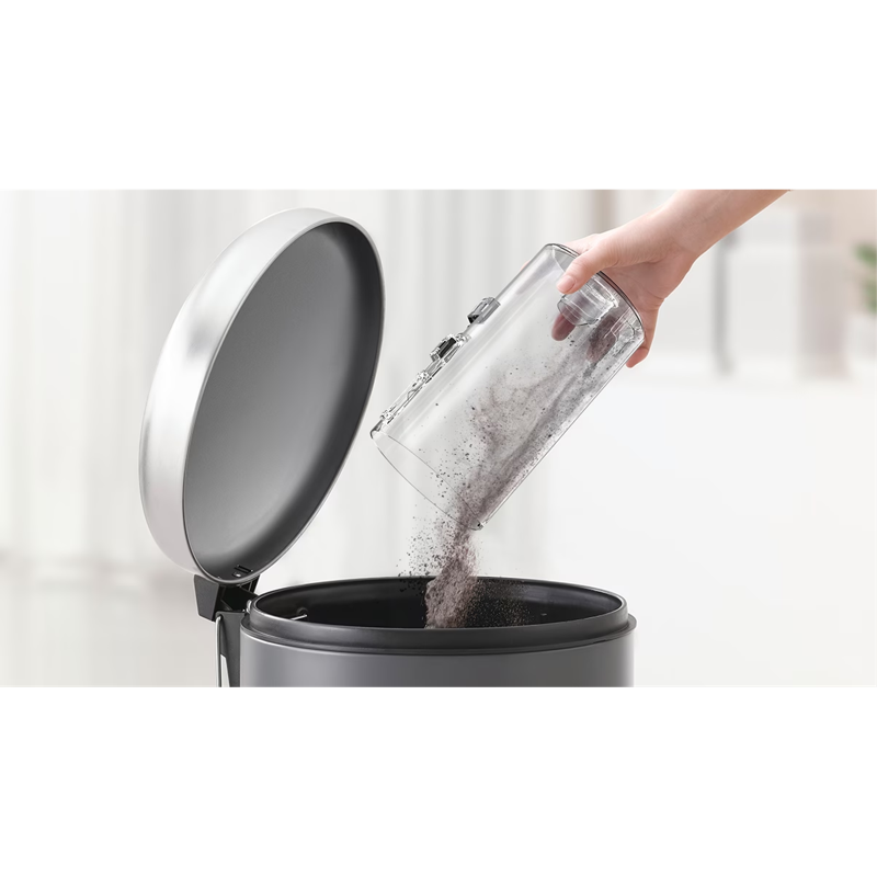 - Täysin pestävä pölysäiliö, kevyt rakenne ja irrotettava akku