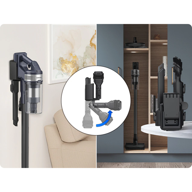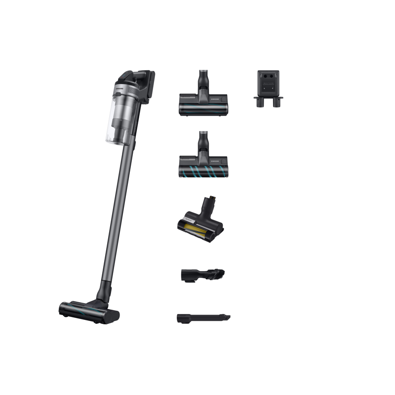 Samsung Jet 75E Complete -varsi-imuri, akku, latausasema, Pet Tool -lemmikkiharja, Trubo Action -harja, Soft Action -harja, Combination- & Crevice Tool -suuttimet