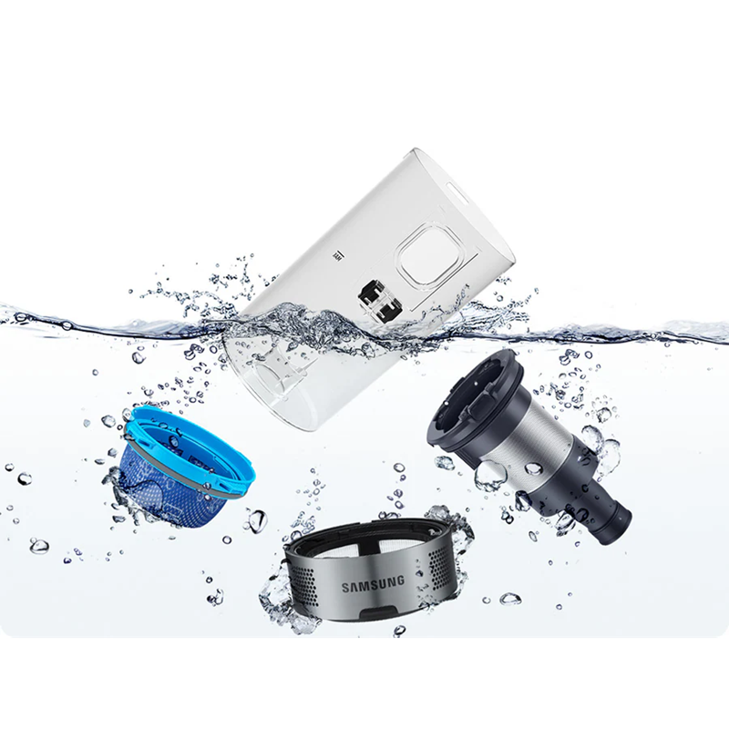 - Täysin pestävä pölysäiliö, kevyt rakenne ja irrotettava akku