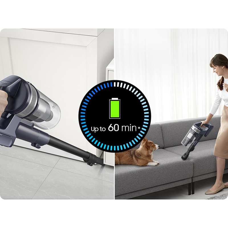 - Suuren kapasiteetin akku mahdollistaa jopa 60 minuutin siivouksen yhdellä latauksella