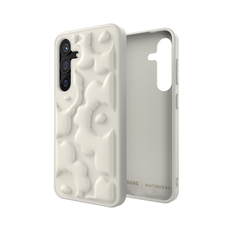 Samsung x Marimekko Embosse Case -suojakuori on laadukas suojakuori, joka nostaa Galaxy S24 -puhelimesi tyyliä. Kohokuvioidussa suojakuoressa on laadukas tuntuma, joka herättää Marimekon Unikko-kuosin henkiin käsissäsi.