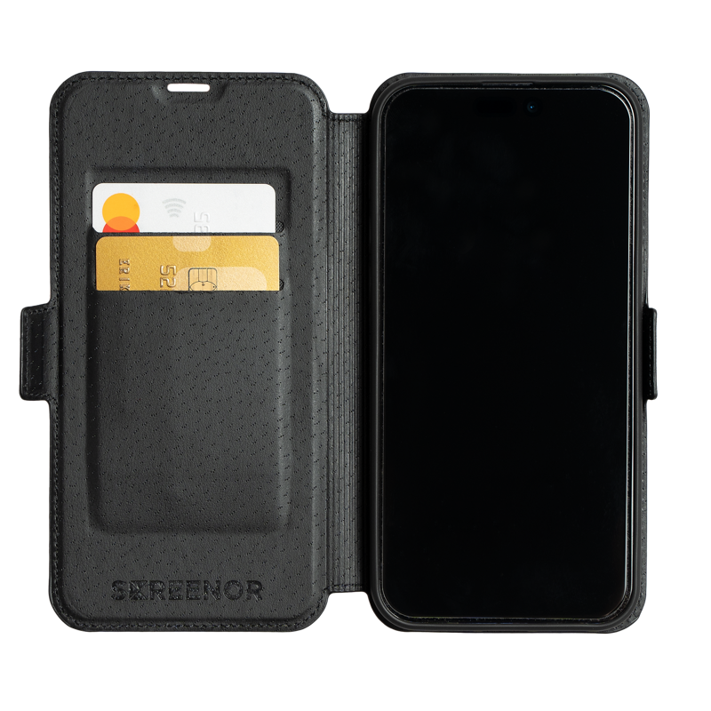 - Tyylikäs lompakkokotelo kahdella korttitaskulla ja magneettikiinnityksellä