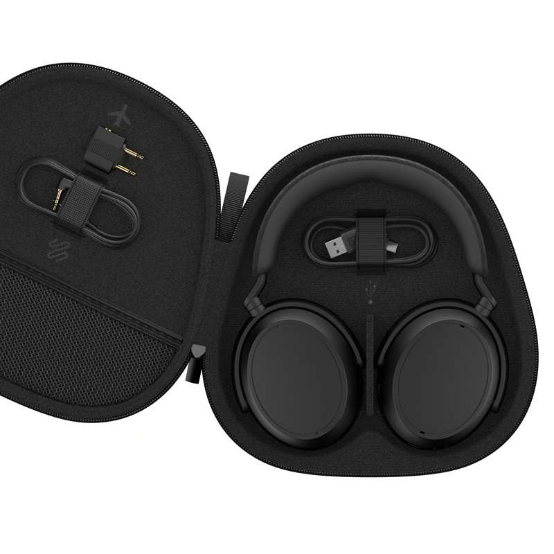 Momentum 4 -vastamelukuulokkeet, USB-C kaapeli, kantolaukku, lentokone adapteri, audio kaapeli 3,5 mm ja 2,5 mm
