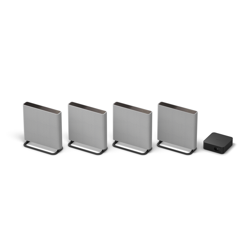 Huonekaluja ei tarvitse järjestellä uudelleen eikä kaiuttimien täydellisestä sijoittelusta tarvitse huolehtia - jokaisen kaiuttimen sisällä on kaksi mikrofonia, jotka nerokkaasti mittaavat kaiuttimien suhteellisen korkeuden ja sijainnin. Tämän ansiosta järjestelmä voi tuottaa kaksitoista virtuaalista kaiutinta, jotka ympäröivät huoneesi täysin upealla tilaäänellä.