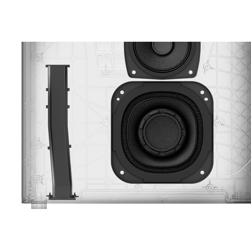 Ylöspäin suuntautuvat kaiuttimet heijastavat ääntä katosta ja tuottavat vaikuttavan äänentoiston yläpuolelta, ja X-Balanced-kaiutinyksiköt on muotoiltu erityisesti syvän, voimakkaan basson ja minimaalisen vääristymän aikaansaamiseksi.