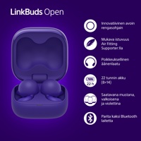Lisäksi LinkBuds Open on tehty ympäristöä ajatellen. Kuulokkeissa ja kotelossa on käytetty kierrätysmuovia, ja myös pakkaus on 100-prosenttisesti muoviton.