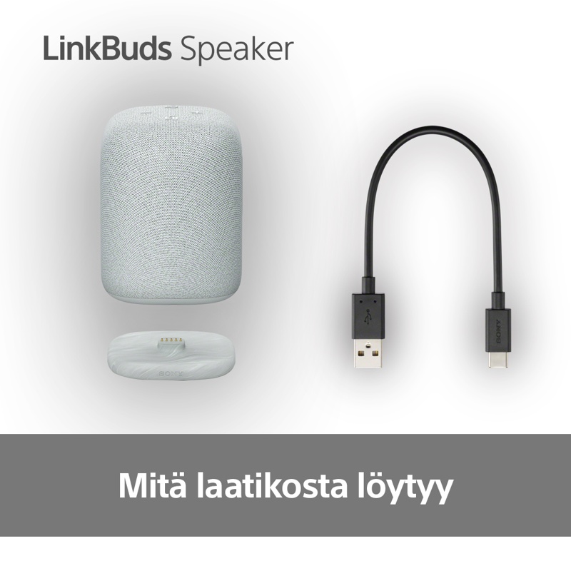 - LinkBuds Speaker -kaiuttimessa yhdistyvät ylellinen muotoilu, helppo lataus ja monipuolinen sijoitus, mikä tekee siitä tyylikkään ja käytännöllisen lisän mihin tahansa kotiin
