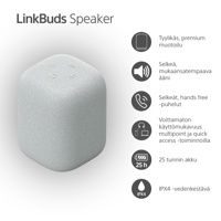 Kompaktista koostaan huolimatta LinkBuds Speaker tuottaa selkeän ja yksityiskohtaisen äänen. Sen kaksisuuntainen kaiutinjärjestelmä, jossa on laadukas diskantti ja bassokaiutin, tuottaa tasapainoisen äänen, joka sopii täydellisesti musiikkiin, äänikirjoihin tai podcasteihin.
