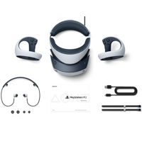 Virtuaalitodellisuuslasit, PlayStation VR2 Sense -ohjaimet hihnoilla (L)/(R), USB-kaapeli (ohjainten pariliittämiseen ja lataamiseen), stereokuulokkeet, kolme paria kuulokesovitteita, painettuja materiaaleja.
