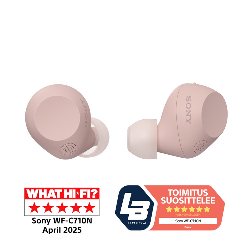 Esittelyssä Sony WF-C710N -vastamelukuulokkeet. Hiljennä ympäristö ja uppoa musiikkiin WF-C710N -korvanapeilla. Kummassakin kuulokkeessa on kaksi mikrofonia, jotka havaitsevat ja vaimentavat ei-toivottua melua sekä kuulokkeen sisältä että ulkopuolelta, mikä takaa tehokkaan vastamelukokemuksen. Vaihtoehtoisesti ympäristön äänitilalla voit pysyä yhteydessä ympäristöösi, sillä se tarjoaa läpinäkyvän kuuntelukokemuksen, joka pitää sinut tietoisena ympäristöstäsi samalla kun nautit musiikista. Olitpa sitten kuntosalilla, kahvilassa tai matkalla töihin, WF-C710N antaa sinun keskittyä olennaiseen.