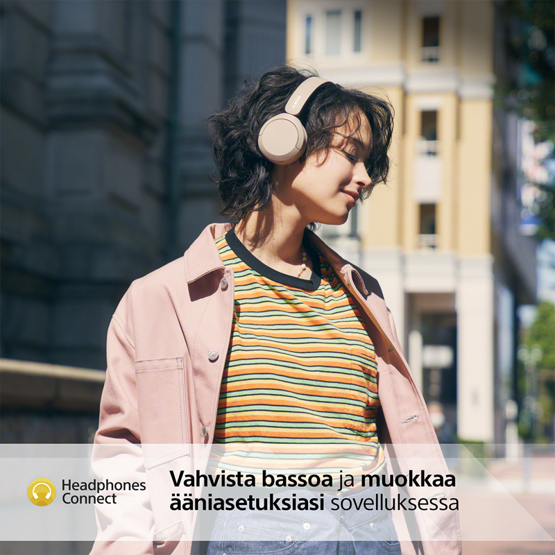 Langattomien Sony WH-CH520-kuulokkeiden Digital Sound Enhancement Engine (DSEE) -tekniikka palauttaa musiikin korkeilla taajuuksilla ja asteittaisella häivytyksellä aidomman äänen aikaansaamiseksi. Voit jopa mukauttaa musiikin äänen oman makusi mukaiseksi EQ-asetuksilla Sony | Headphones Connect -sovelluksessa, ja nauttia siten yksilöllisestä kuuntelukokemuksesta.
