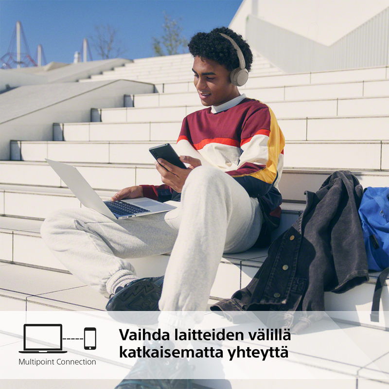 WH-CH520-kuulokkeissa on kätevä monipistekytkentä, helpot painikkeet ja mahdollisuus ääniohjattavuuteen. Voit yhdistää kuulokkeet helposti Swift Pair- ja Fast pair -ominaisuuksilla, joten kuulokkeet sopivat täydellisesti jokapäiväiseen käyttöön.