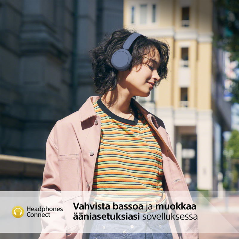 Langattomien Sony WH-CH520-kuulokkeiden Digital Sound Enhancement Engine (DSEE) -tekniikka palauttaa musiikin korkeilla taajuuksilla ja asteittaisella häivytyksellä aidomman äänen aikaansaamiseksi. Voit jopa mukauttaa musiikin äänen oman makusi mukaiseksi EQ-asetuksilla Sony | Headphones Connect -sovelluksessa, ja nauttia siten yksilöllisestä kuuntelukokemuksesta.