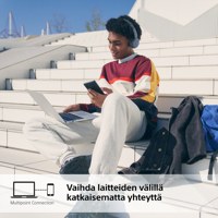 Täydellisen käytännöllisyyden takaamiseksi voit yhdistää nämä Bluetooth-kuulokkeet kahteen Bluetooth-laitteeseen samanaikaisesti. Saadessasi puhelun kuulokkeesi tunnistavat soivan laitteen ja yhdistävät siihen automaattisesti. Voit myös vaihtaa langattomat kuulokkeesi nopeasti jompaankumpaan laitteeseen vain napin painalluksella.
